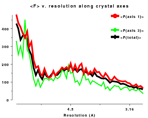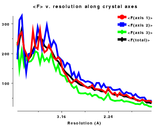 resolution data does not usually generate such a straight line. In fact the atoms are not distributed randomly within the crystal and the solvent regions